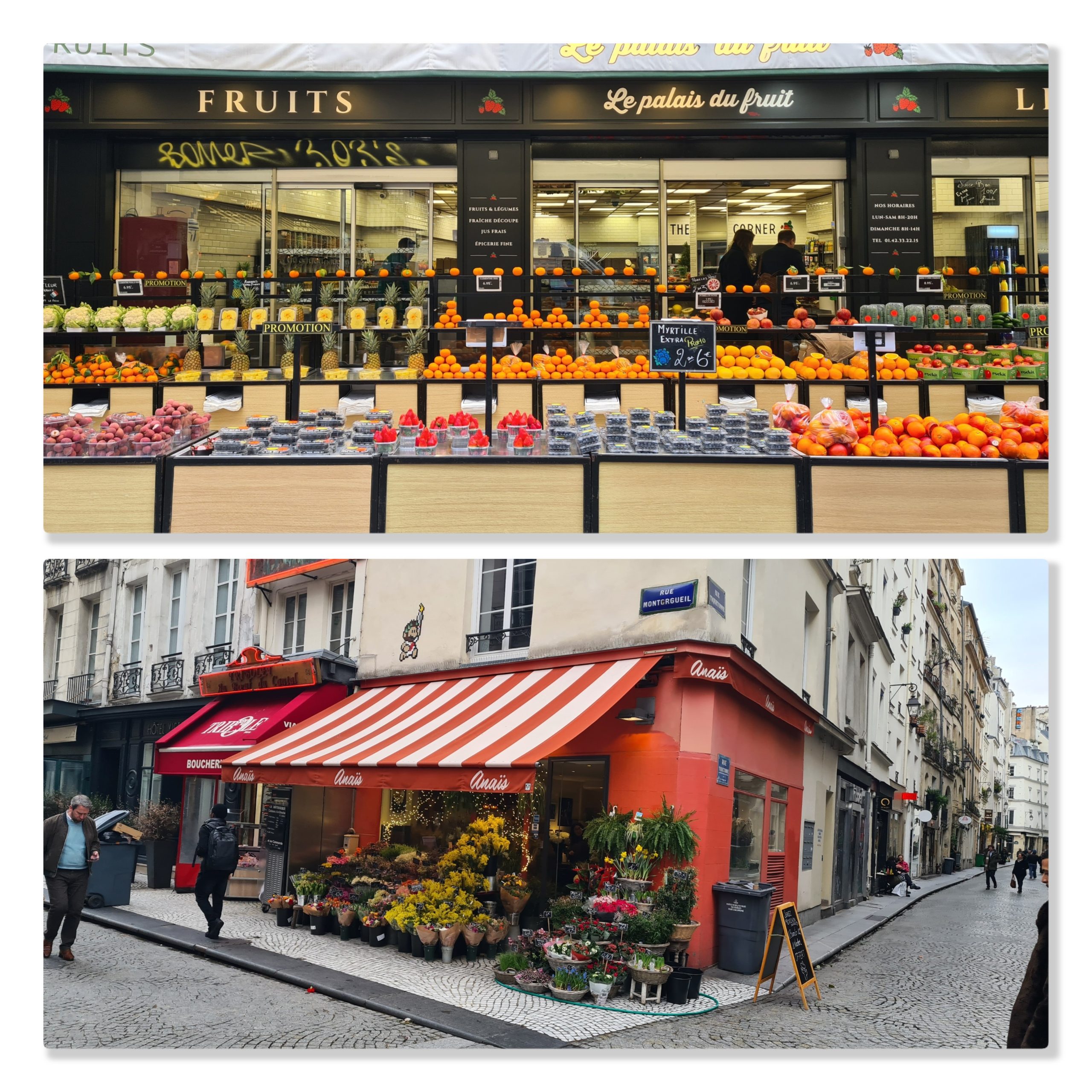 I slutet av Montorgueil-gatan finns en lite annorlunda väggmålning av Tintin och Kapten Haddock.